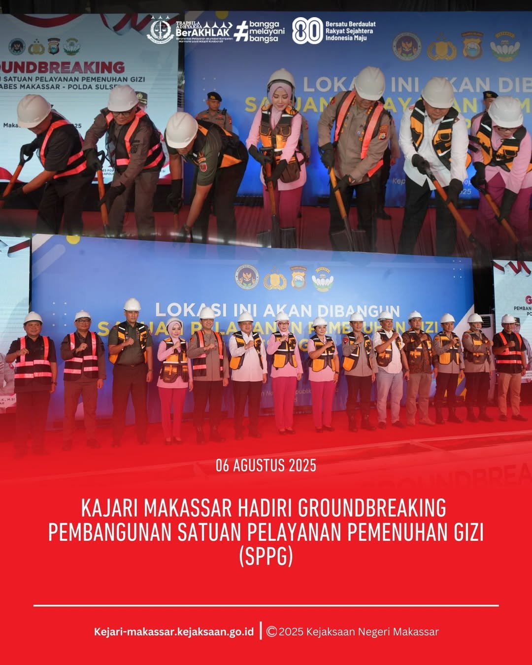 Makassar — Kepala Kejaksaan Negeri (Kejari) Makassar, Nauli Rahim Siregar, S.H., M.H., menghadiri acara peletakan batu pertama (groundbreaking) pembangunan Satuan Pelayanan Pemenuhan Gizi (SPPG) Polrestabes Makassar yang berlokasi di Jl. Perintis Kemerdekaan KM 17, Kelurahan Pai, Kecamatan Biringkanaya, Kota Makassar.