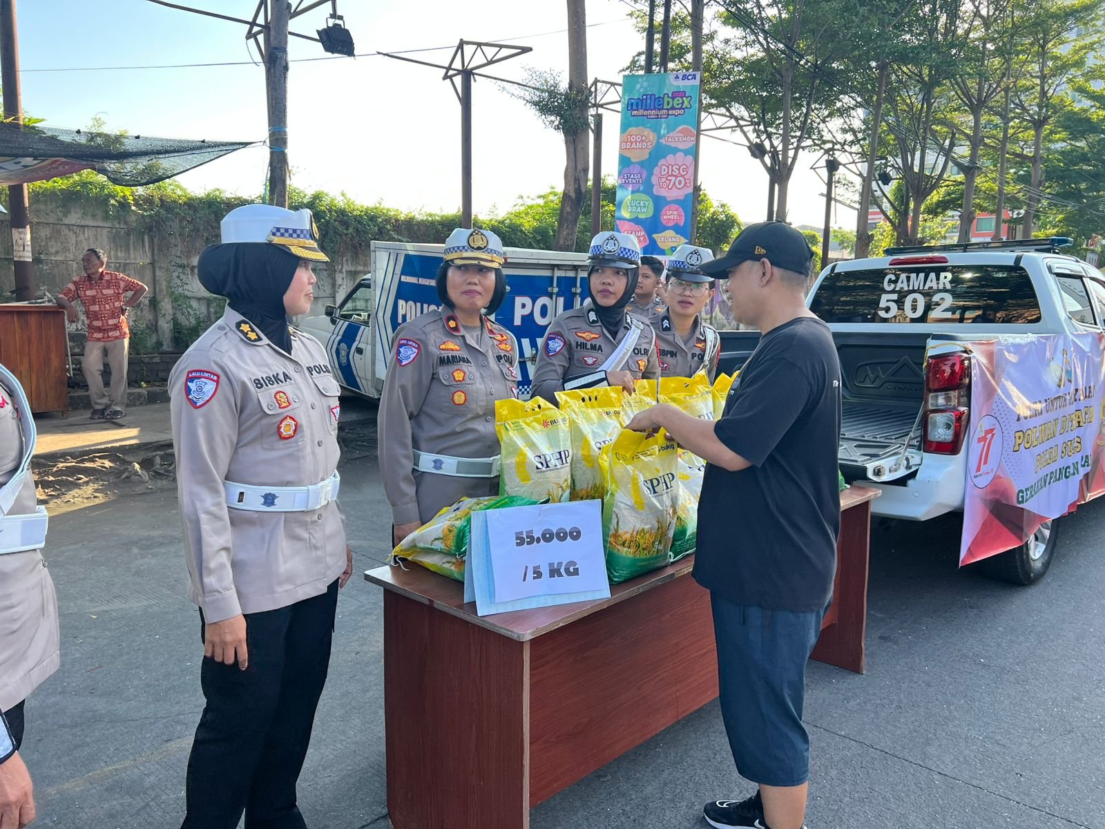 “Selain berbagi sembako, kami juga menggelar Gerakan Pangan Murah dengan menjual beras berkualitas seharga Rp55 ribu per 5 kilogram,” ujar AKBP Siska di sela kegiatan.